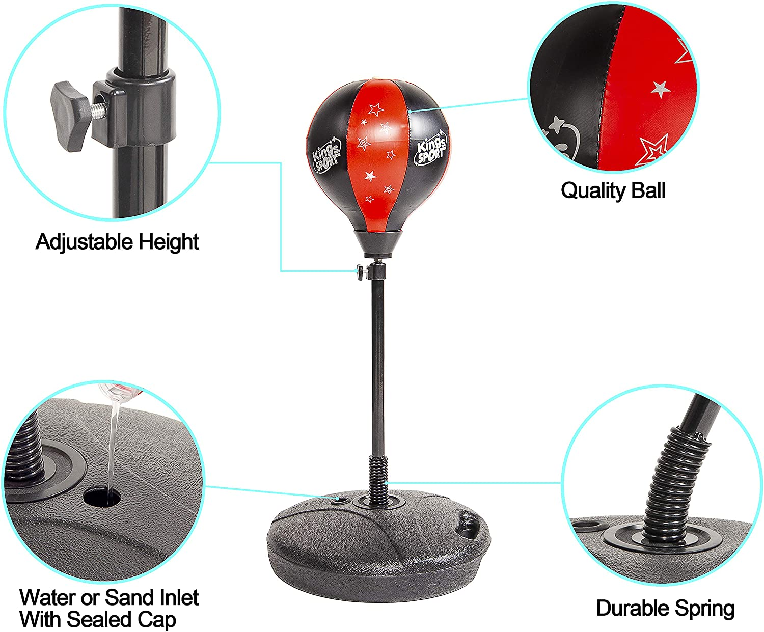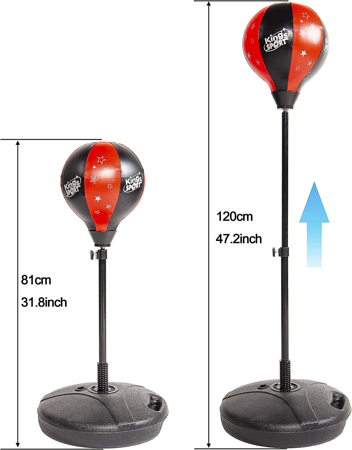 Height Adjustable Punching Ball Stand: This punching bag with stand can be adjusted between 31” to 47”, which can be adjusted by personal preference