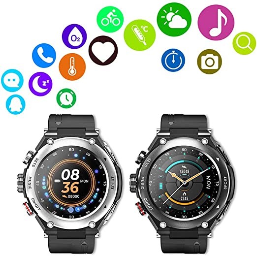 GUIQU Smart Watch with Bluetooth Headphones, Wireless Headphones 6D Stereo, 1.3 Inch Touch Screen, IP67 Waterproof GPS Sports Watch, with Talking, Men's Fitness Watch Tracker (Sci-Fi Silver)